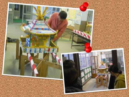 今日は松陽校の児童がみんなで作った『子どもみこし』の仕上げをしてくださっていました。とってもステキなみこしの完成です。秋まつり当日がとっても楽しみです。