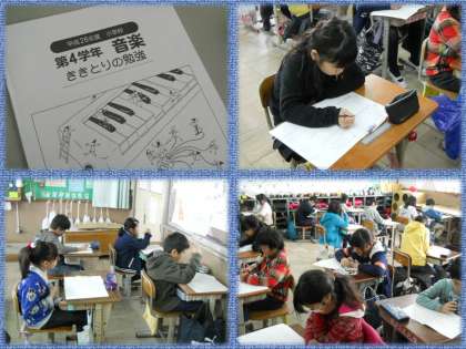 聞き取りのテストをしました。いろんな音楽を聞いて,みんな楽しそうに問題に答えていました。