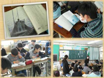 6年生の国語の学習です。『海の命』という教材で学習を進めています。今回の授業では,【作品の主題を考えよう】をめあてに取り組みました。文章をしっかり読んだり,2人組で話し合いをしたりして考えました。