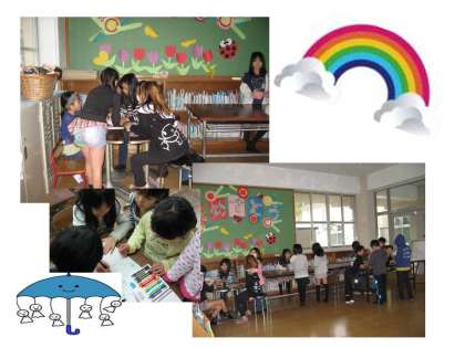 朝から雨で運動場は使えませんでしたが、子どもたちはみんなで楽しく遊べる工夫をしていました。