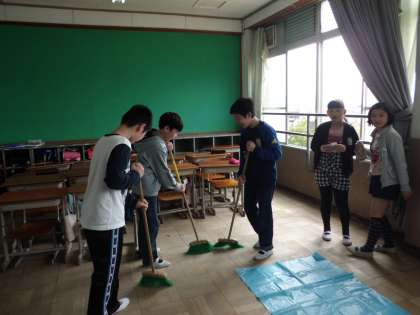 これからお世話になる教室をおおそうじ。6年生は,小学校生活最後の教室です。