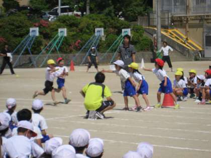 リレーはみんなが見守る中,走ってみました。