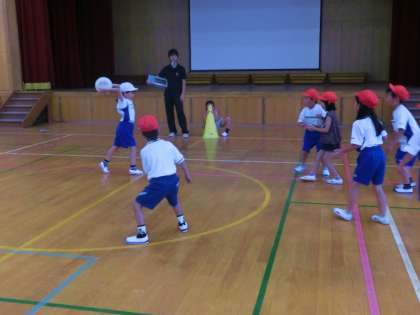 小学校でする初めてのドッジボール。体育館の広いコートでのびのびと活動することができました。授業の終わりには,子どもたちから「もっとやりたい!」という声がたくさん聞こえてきました。