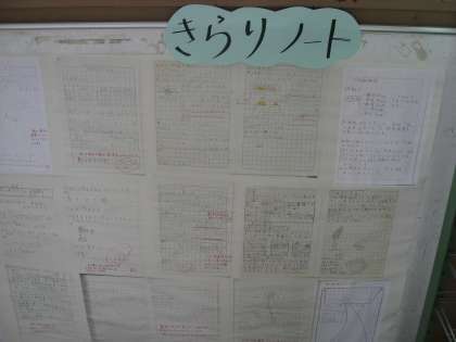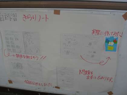 5年生の廊下には「きらり」な自主学習がたくさん掲示されています。