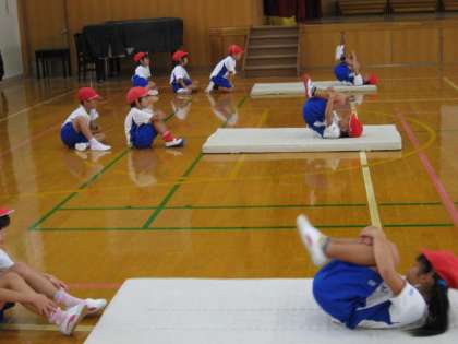 体育ではマット遊びをしています。