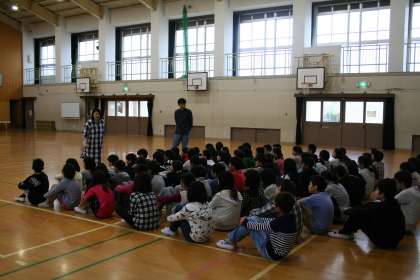 体育館で隊形の移動,歌の練習をしました。さすが6年生という感じでびしっとできていました。