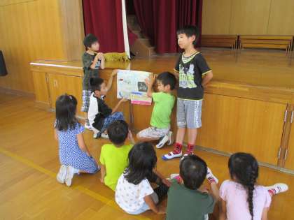 先週,今週とクラスごとに1年生を招待して,調べたことを発表しました。どのグループも,分かりやすく伝えることができました。1年生は,「はじめて知ったよ。」「今度,行ってみたいな。」など,と嬉しそうに話していました。
