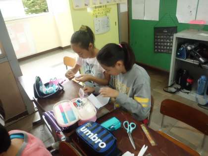練習布からレベルアップして,自分たちでティッシュケースの大きさをはかることから始めました。初めて1からつくるとあって,とまどいも見られましたが,慣れてくるとどんどん作業が進み,あっという間に完成しました。この学習を活かし,家に帰ってもなにか作ってほしいと思います。