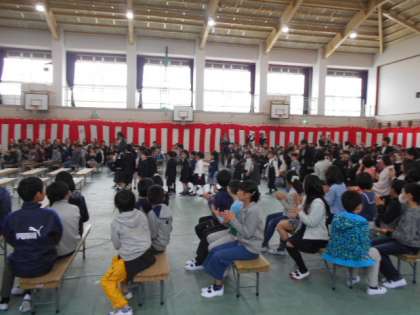 ご臨席いただきましたご来賓の皆様,地域の皆様,保護者の皆様,本日は本当にありがとうございました。皆様のおかげで無事82名のかわいい子どもたちを迎えることができました。今後ともご指導・ご協力の程よろしくお願いいたします。