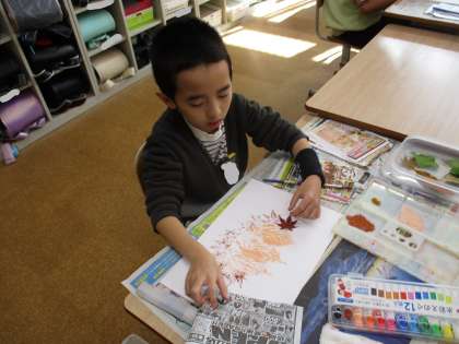 11月17日(月) コスモス学級 かざり「葉っぱアートその1」