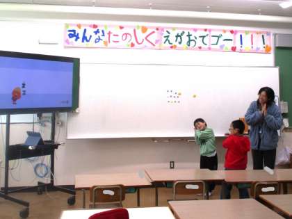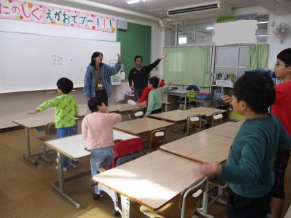 ALTの先生と一緒に外国語の歌を楽しんでからゲームをしました。