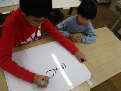 記述式の回答では、相談しながらホワイトボートに書きました。