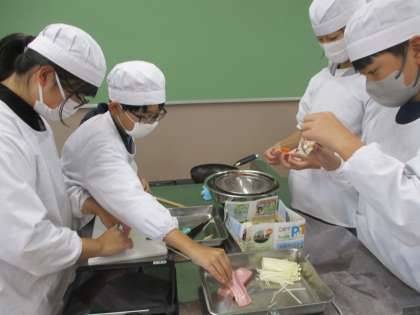 今まで学習した、野菜の切り方、ゆで方などを思い出して調理しました。