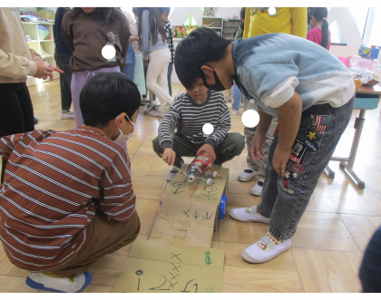 1年生に紹介する日です。1年生が遊んでいる様子を見ながら、その場で話し合い、作り直している様子がありました。