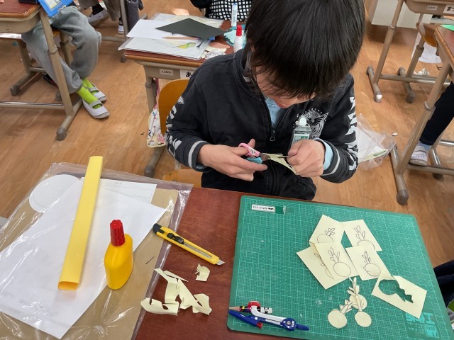 1月22日(木) 3年生 図画工作科「わりピンワールド」