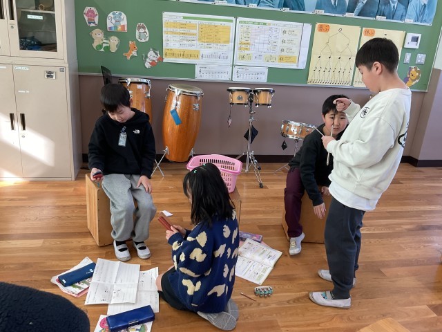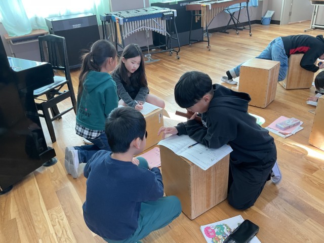 今日はグループで楽器を使ってさらに工夫をしてみました。
