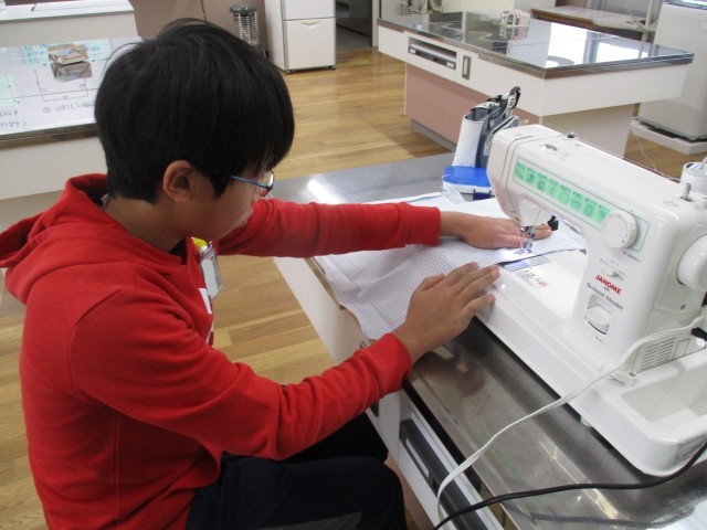 5・6年生の家庭科では、ミシンを使って製作をしています。