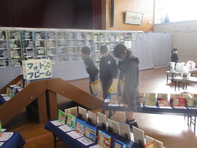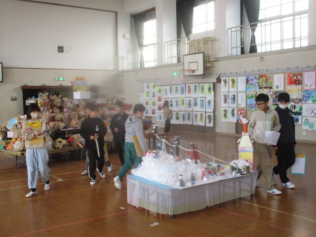 今年度の作品展がありました。どの学年の作品もみんなは楽しみながら