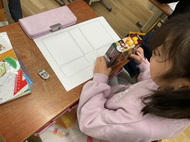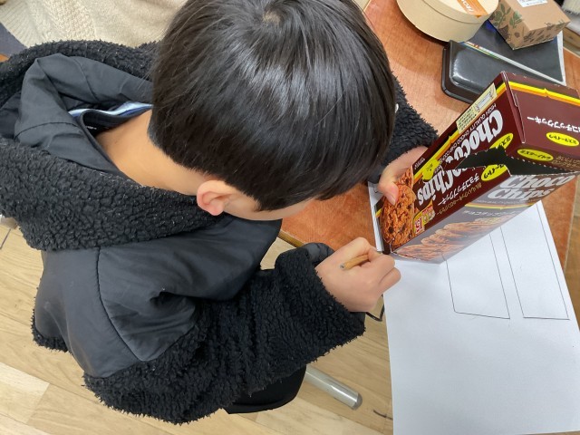 面の形に注目しながら、はこの面を紙にうつしとりました。