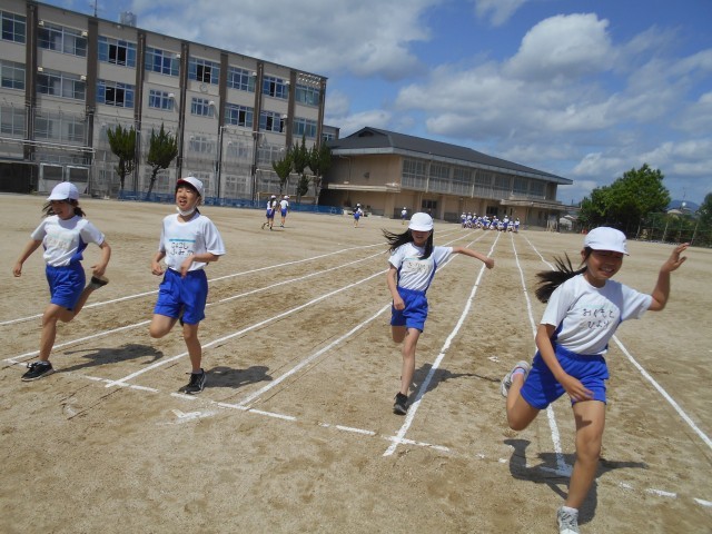 学年みんなで50m走を走りました。