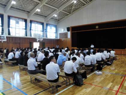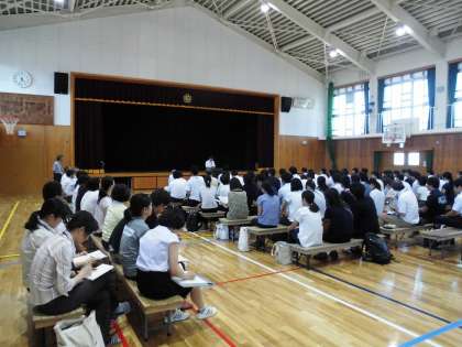 ・最後に体育館で全体会をおこない,各部会で話し合われたことの報告をして締めくくりました。