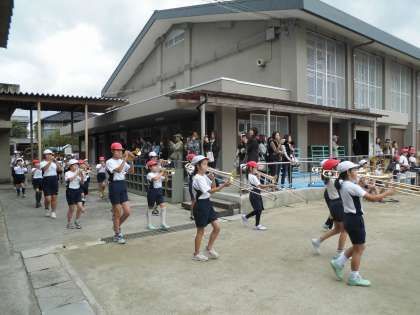 運動会が始まりました。金管バンドによる鉄腕アトムの演奏で入場行進です。