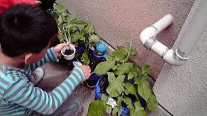 アサガオを間引いて,1部を家に持って帰って育てます。