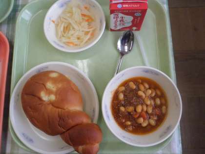 今日の給食のパンは,いつもとは少し違います。ちょっとねじれていてサツマイモが入っています。名付けて「ツイストおさつパン」