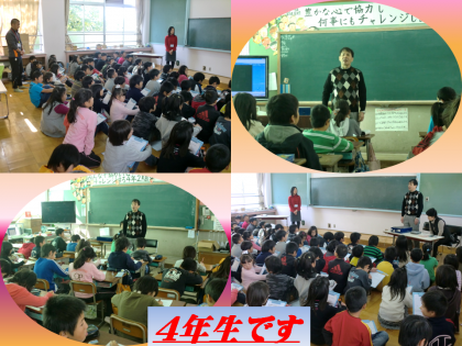 毎年4年生は、総合学習で福祉教育の一環として視覚障害で地域近くに住んでおられる山下さんをお招きして学習をしています。今日も山下さんから本当の優しさや思いやりの心を学びました。今年は、2年前に同じ学習を山下さんから学んだ6年生が、”山下さん、こんなに大きくなりました”と言って、今練習している全校合唱の歌を聴いてもらいました。
