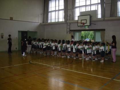 今日のリハーサルは、あいにくの雨・・・。体育館で団体演技のリハーサルを行いました。笑顔で踊って入場!「玉」無しで、玉入れを楽しみました。すごい演技力!退場まで通して練習しましたがバッチリ!!でした。明日は晴れになり、みなさんにかっこいい姿を見てもらいたいと思います。