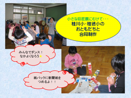 1月27日〜30日 京都市美術館別館で開催される小さな巨匠展にむけて たいよう学級と桂川小学校・桂徳小学校の育成学級のお友だちで合同制作を行いました。