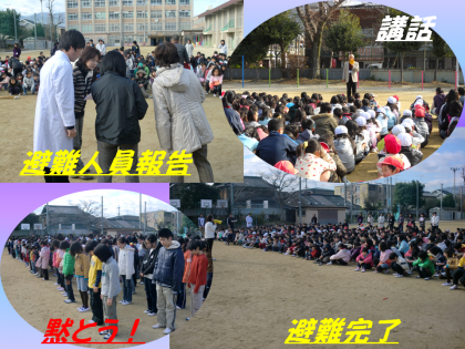 今日の午前10時から地震を想定した避難訓練を行いました。校内放送の後、各教室から運動場に3分59秒で全員静かに避難し終えました。学校長の講話の後、16年前の阪神淡路大震災の時,小学5年生だった五十川教諭からその当時の恐怖の体験を語ってもらいました。その後この大震災で犠牲になられた6,434人の方々のご冥福を祈って,全員黙とうを捧げました。