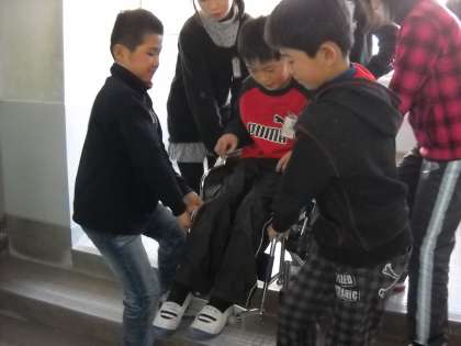 4年生は総合的な学習で「今の自分にできること」をテーマに学習をしています。今日は,阪急桂駅で点字がどのように使われているか調べる・車椅子の体験をする・交流した山下さんへメールを送る・次に訪問する幼稚園の保育士さんの仕事を調べるの4つのグル−プに分かれて学習しました。