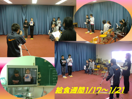 今日から1/21(金)まで本校では給食週間の取組みをします。給食委員会の子どもたちが、豆つまみ大会や給食カルタ、パクパク賞の取組などの紹介を給食時間にテレビ放送で行いました。
