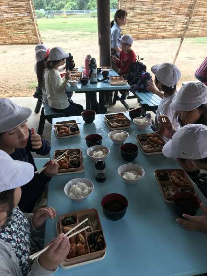 いっぱい遊んでお風呂も入りました。これから夕ご飯をいただきます。ご飯の後は楽しみにしているキャンプファイヤーです。