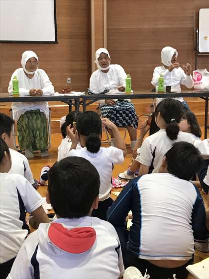 地元で実際に漁に出ておられる海女さんに来ていただきお話を伺いました。海女さんの衣装も着せてもらいました。