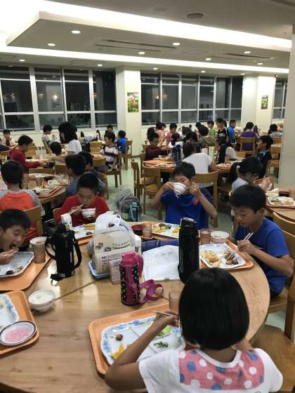 2日目の夕食をいただきます。みんなとても元気です。