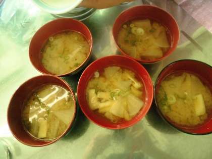 調理実習でごはんとみそ汁を作りました。