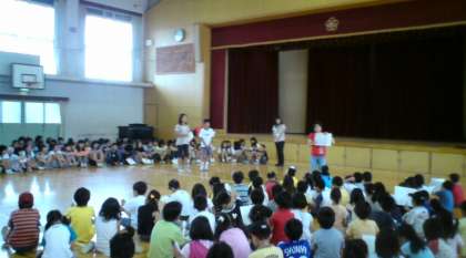 朝の時間に,体育館で6年生が,全校合唱の歌を2年生に教えました。6年生のいい見本を2年生が学びました。しっかりと歌唱指導もしています。