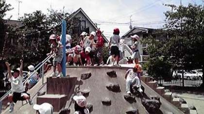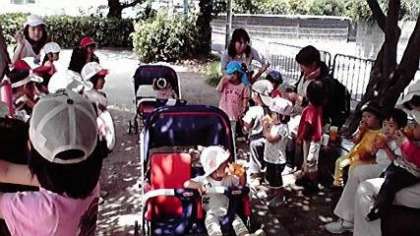 1年生は,学校の南にある巽公園で楽しんでいます。たまたまそこに,乳児保育所の乳児たちと一緒になりました。