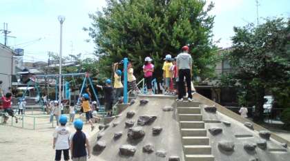 校区探検の後,巽公園に到着です。諸注意を聞き,楽しく遊んでいます。