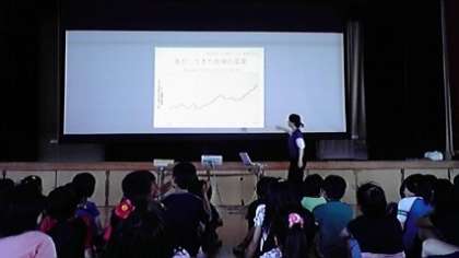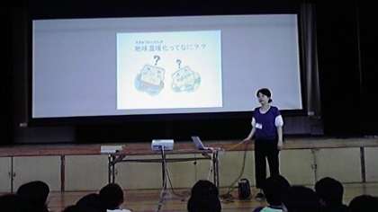 本日,4年生は子どもたちが地球温暖化防止の重要性について学びました。「NPO法人 気候ネットワーク」のみなさんたちが特別講師となって,地球温暖化問題とそれを防ぐために,われわれが日常生活でのエコライフを実践することの大切さを勉強しました。