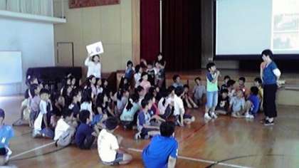 地球温暖化問題について,クイズでも楽しく学びました。桂小学校も平成19年度にKES学校版『環境にやさしい学校』に認定されています。