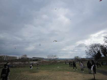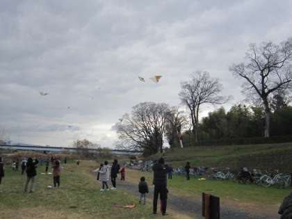 本日,桂離宮前河川敷で,元桂四支部新春たこあげ大会が行われました。