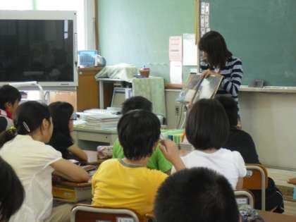 低中高学年の担任が本来の学級担任と入れ替わって,読み聞かせをしました。