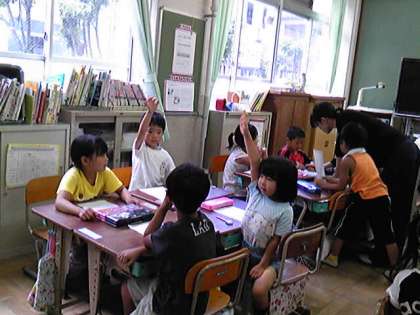 今日は月1回のともだちの日です。1年生は,ぼく・わたしのいいところや 紹介したいところをメモし,お友だちに紹介しながら「すてき」を探そうと,グループで紹介し合いました。