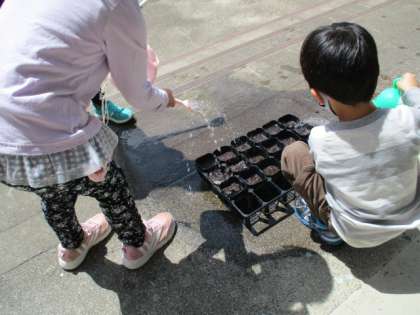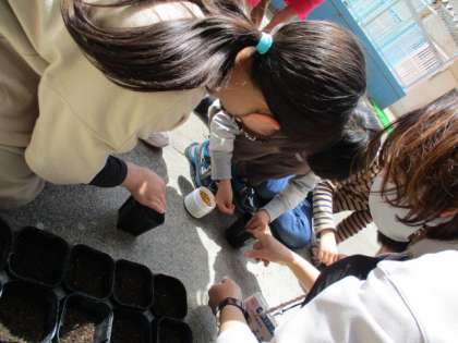 上級生に手伝ってもらいながら,下級生も種まきをしたり水やりをしたりしました。