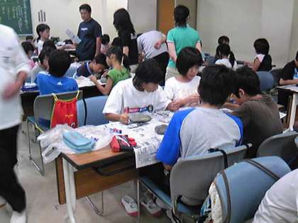 浜で拾っておいた石に,絵の具で字を書いたり絵をかいたりして思い出の作品に仕上げます。