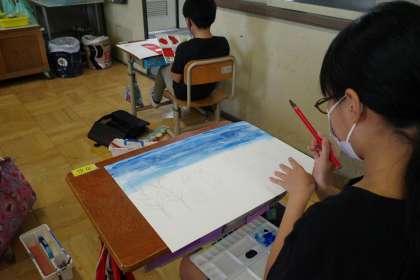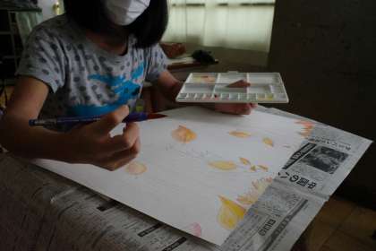 5年1組では,お話を絵にするコンクールに向けて,子どもたちが一生懸命に画用紙と向き合っていました。5年1組は,内館牧子さんの「小さな神たちの祭り」という本を題材にしています。震災と家族をテーマにした高学年らしい作品です。イメージを広げ,自分の表現を工夫している様子が見られました。
