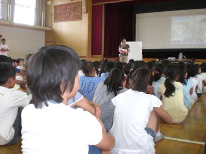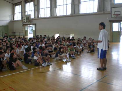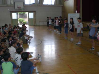 8/30(日),31(月),9/1(火)の2泊3日にわたって,三重県にある京都市の野外教育センター”奥志摩みさきの家”に4,5年生合同で行きます。今日(7/9)は,第1回目の説明会を体育館で4校時に行いました。スライドでみさきの家を見たり,実行委員の紹介や楽しい活動ができるよう約束事を決めたりしました。